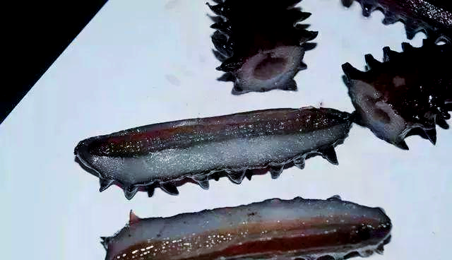 再次,把海参的肚子翻开,若是真海参,就算内脏被掏空了,它的内壁依旧会留下筋状的痕迹 。与之相比,人造海参的肚子里面是光滑没有痕迹的,两端处于封闭状态,不存在开口 。
