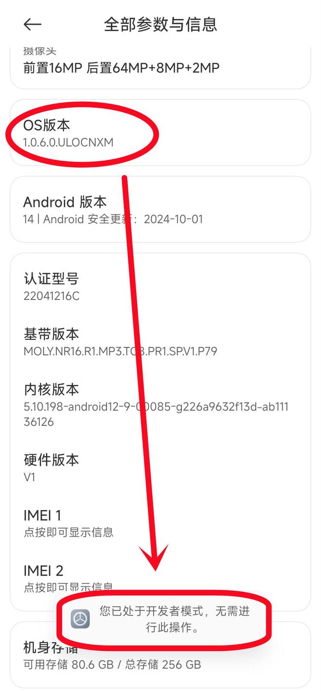 当我们将其打开以后,接着往下进行滑动操作,然后点击一下【OS版本】,重复点击7次,在这个时候,便能够将开发者模式成功打开,与此同时,下方位置也会出现【您已处于开发者模式】这样的具体提示情形,到此种状况出现,也就意味着我们已经成功打开了开发者模式,而别的手机开启方式也是依照这样的方法来进行操作的!